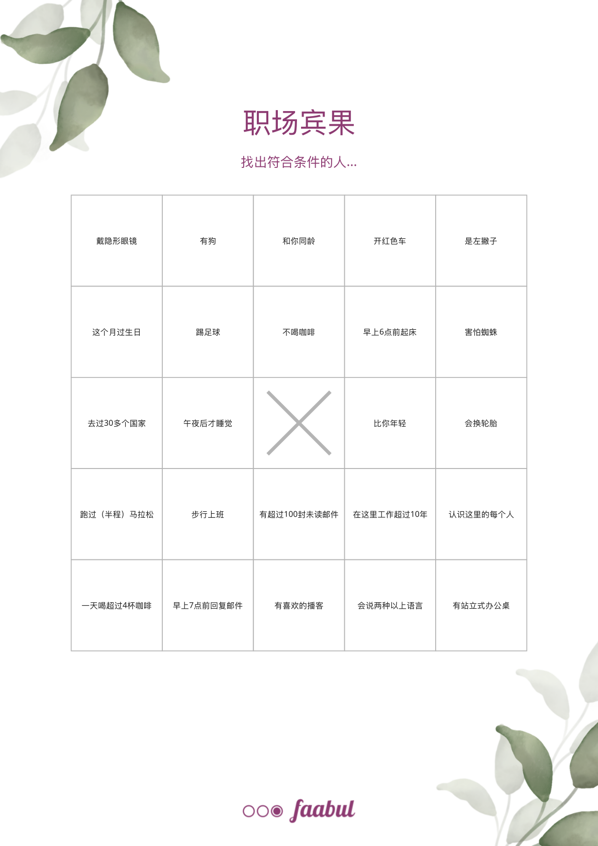 免费可打印的职场宾果卡