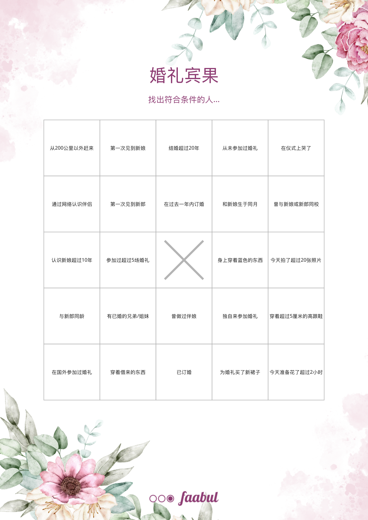 A4 纵向,每页一张宾果卡。为获得最佳打印效果,请按 100% 原比例打印。